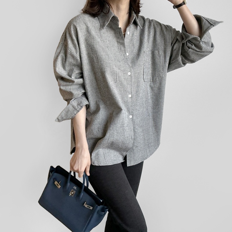 正韓 立體車線 寬鬆弧形下襬長版直條紋襯衫【AS2335】】韓國代購 | Foreverkids 韓國時尚精品、韓國代購、正韓空運、洋裝、吊帶褲、外套、針織外套、寬褲