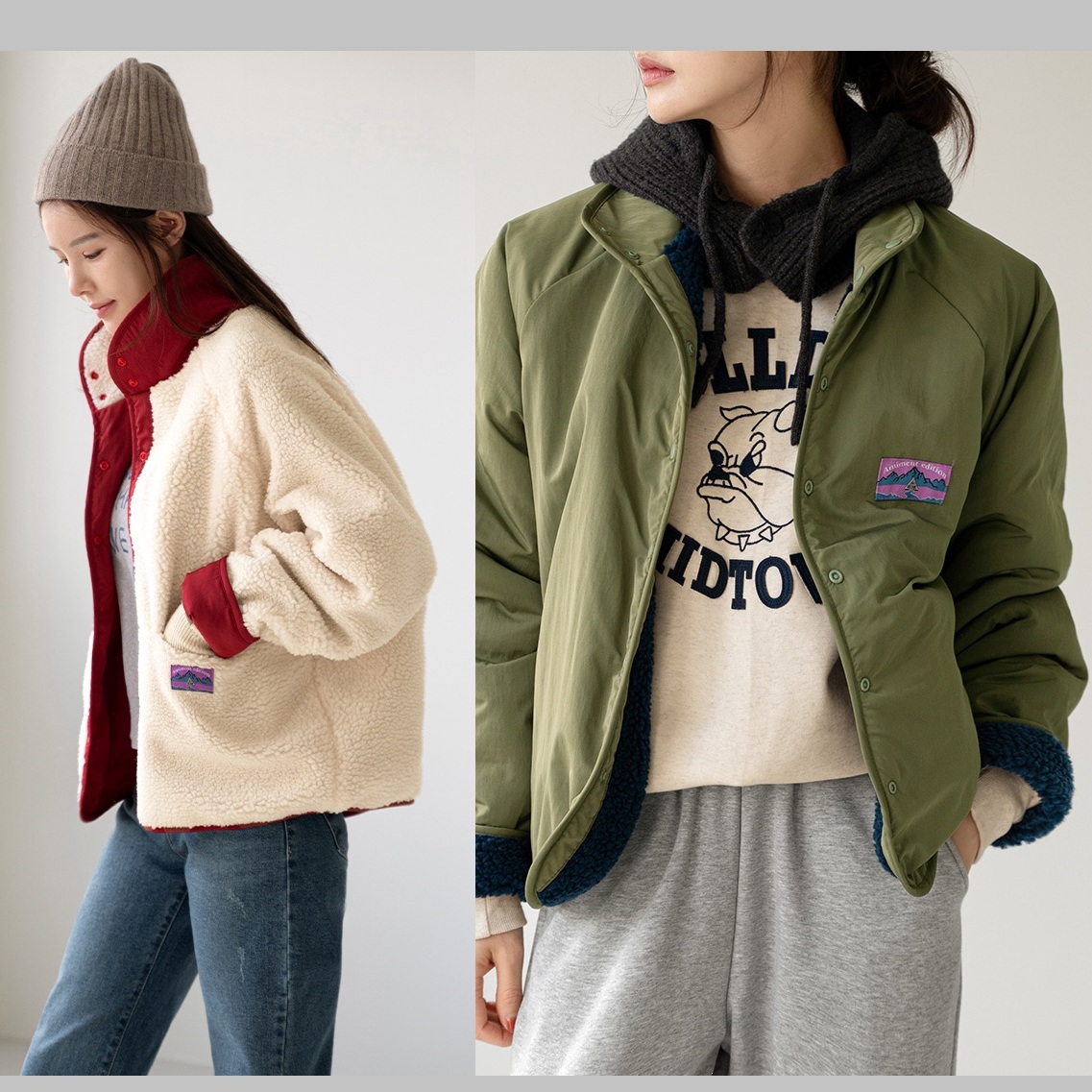 正韓 蓬鬆 厚實雙面兩面可穿 毛絨標籤外套【H52373】 | Foreverkids 韓國時尚精品、韓國代購、正韓空運、洋裝、吊帶褲、外套、針織外套、寬褲