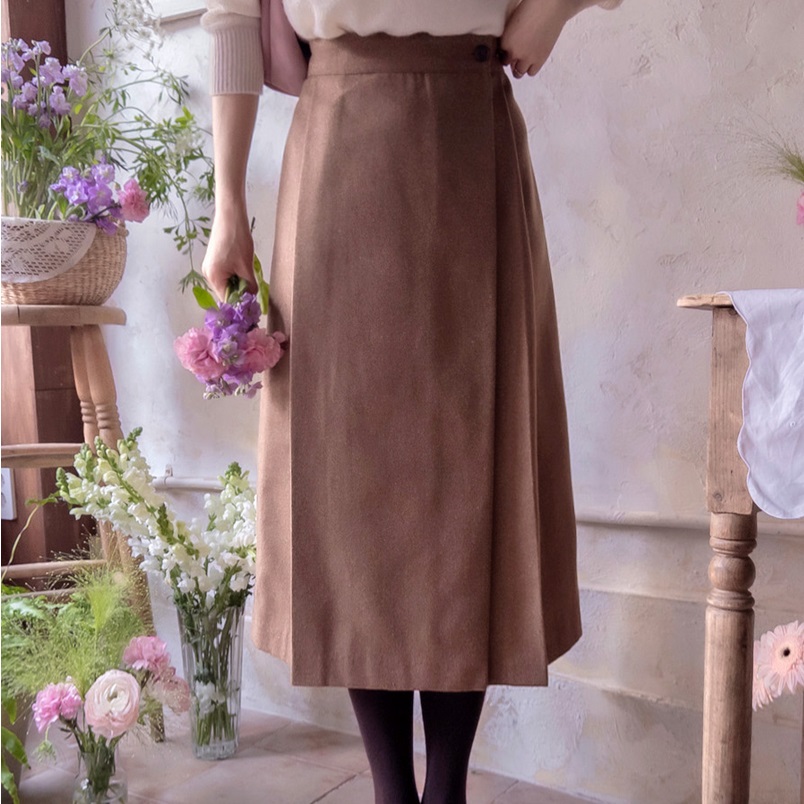 正韓 線條優美褶襉側扣 長裙【A23218】 | Foreverkids 韓國時尚精品、韓國代購、正韓空運、洋裝、吊帶褲、外套、針織外套、寬褲