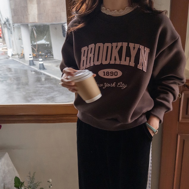 正韓 字母貼片印花刷毛T上衣【A23219】