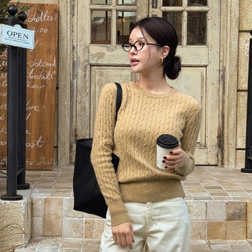 正韓 扭紋圓領針織 上衣【F623228】