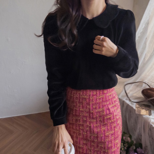正韓 奢華絲絨圓領天鵝絨上衣【A23237】