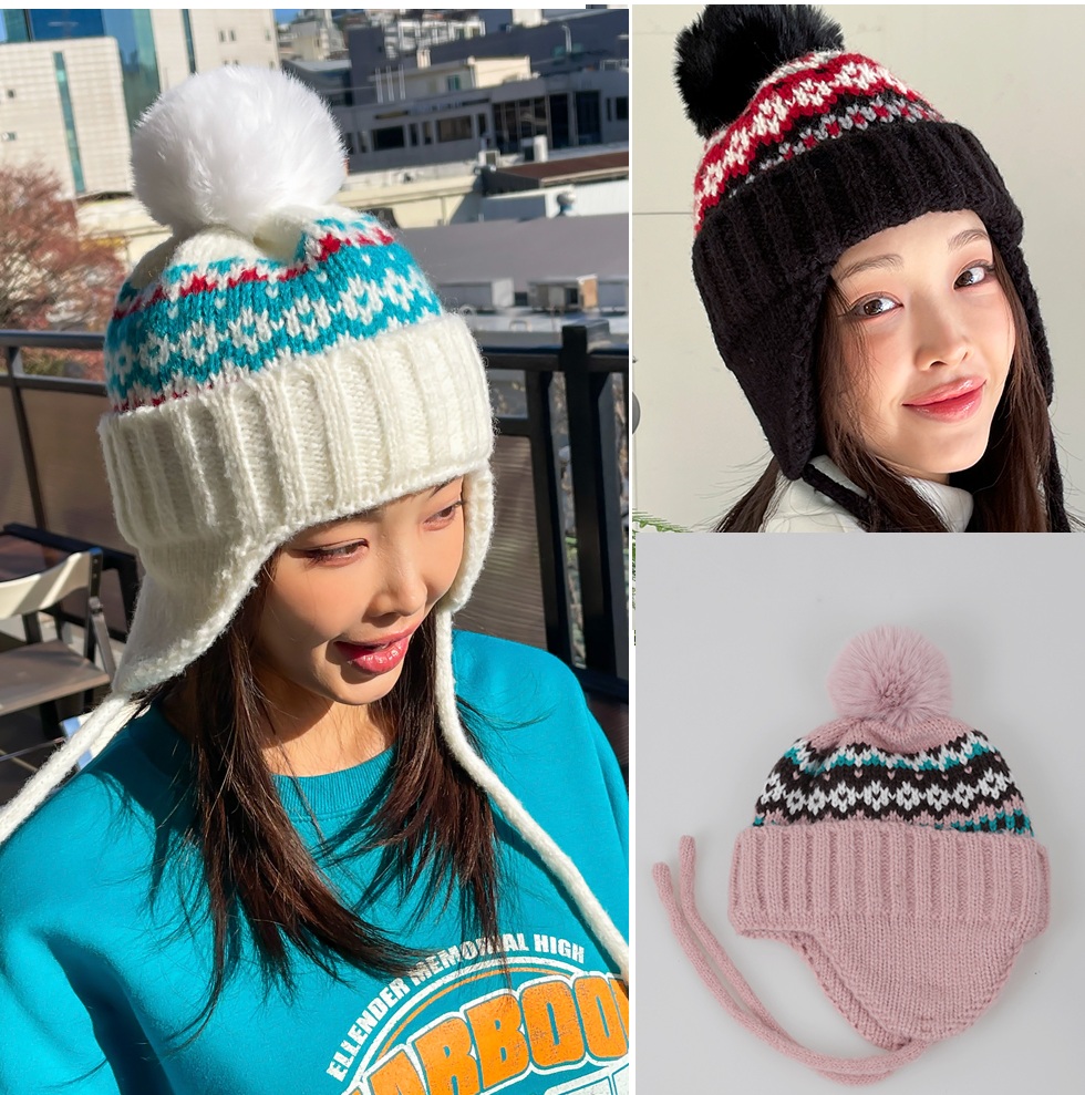 正韓 民族風雪花耳罩毛球毛帽【C623282】韓國代購