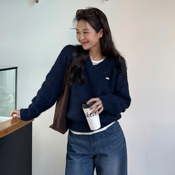 正韓 輕盈V領小吊墜針織上衣【B23349】韓國代購 | Foreverkids 韓國時尚精品、韓國代購、正韓空運、洋裝、吊帶褲、外套、針織外套、寬褲