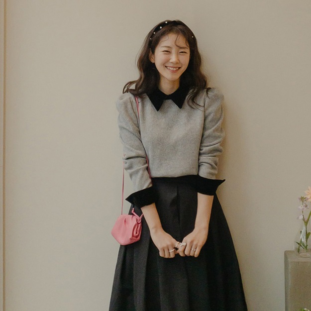 正韓 拼接領配色天鵝絨領 針織上衣【B72809】 | Foreverkids 韓國時尚精品、韓國代購、正韓空運、洋裝、吊帶褲、外套、針織外套、寬褲