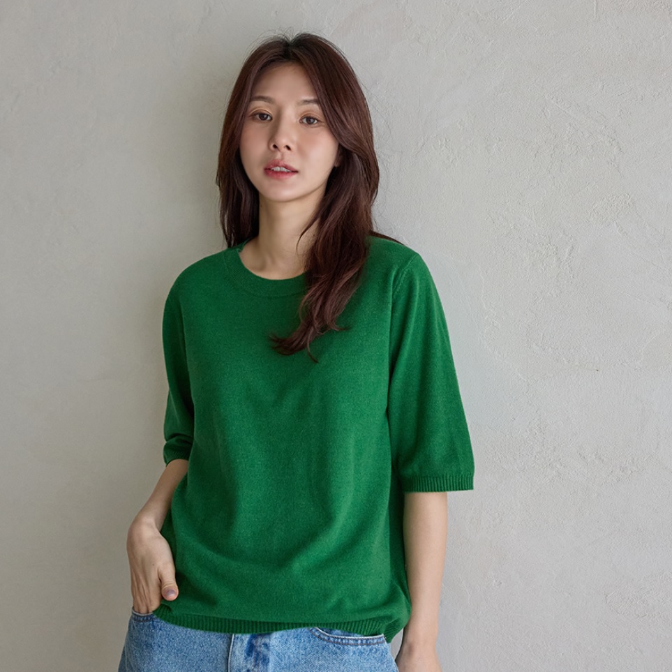 正韓 簡約五分袖圓領純色 素面針織上衣【A73358】 | Foreverkids 韓國時尚精品、韓國代購、正韓空運、洋裝、吊帶褲、外套、針織外套、寬褲
