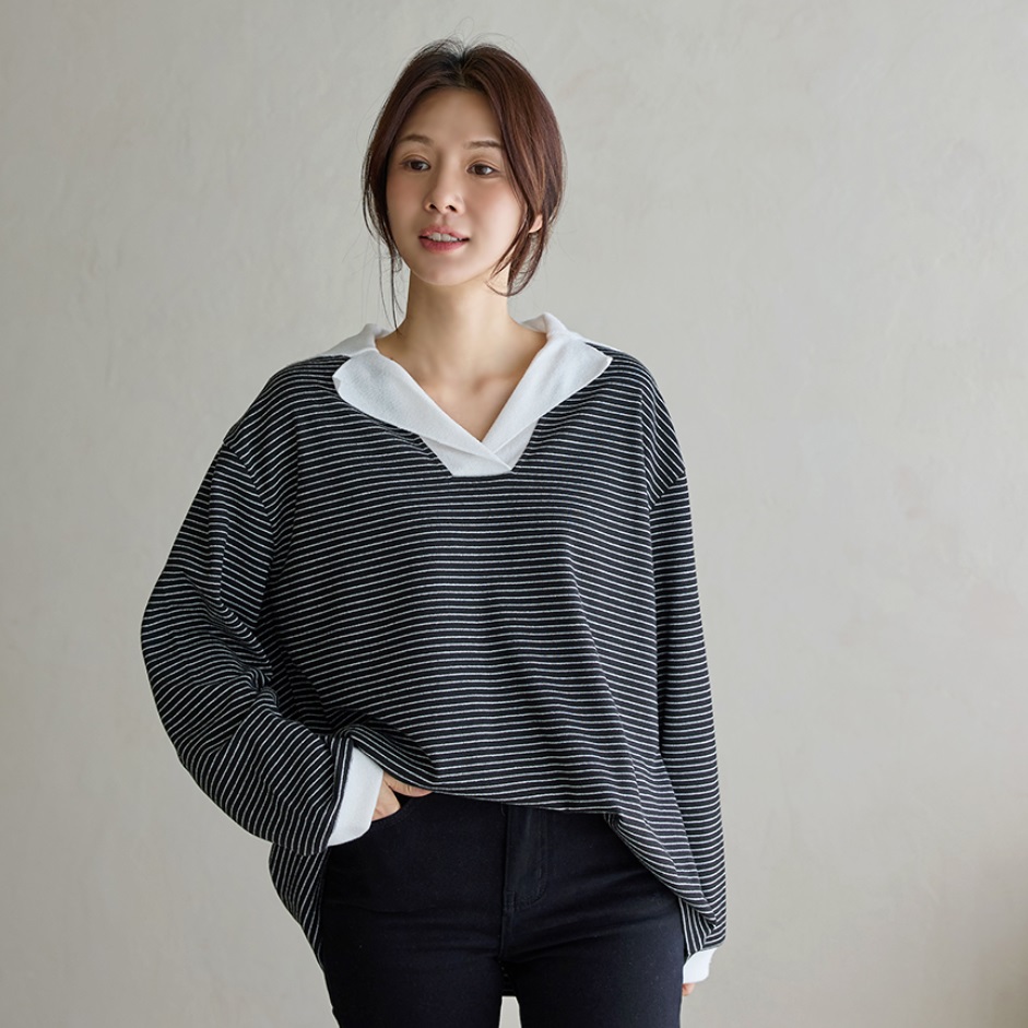 首頁 > 全部商品 > 正韓 配色條紋寬鬆長版T 上衣【B73359】