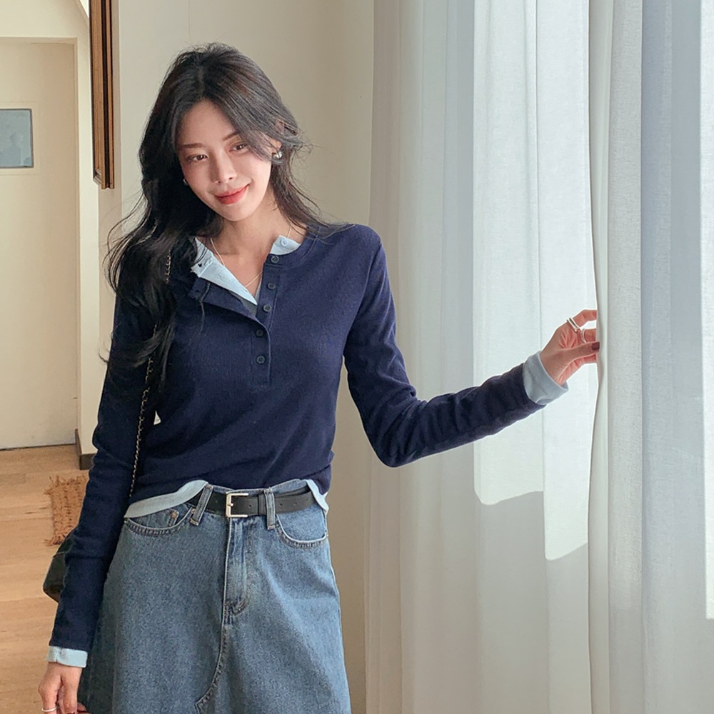 正韓 開扣螺紋針織亨利領T上衣【B74402】韓國代購 | Foreverkids 韓國時尚精品、韓國代購、正韓空運、洋裝、吊帶褲、外套、針織外套、寬褲