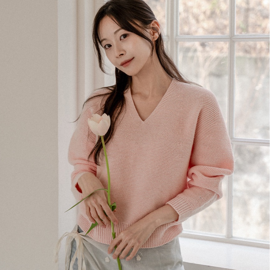 正韓 簡約柔軟V領修飾七分袖 針織上衣【W75001】韓國代購