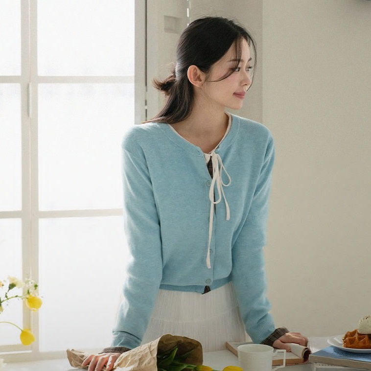 首頁 > 全部商品 > 正韓 拼接格紋設計開襟針織外套【A74405】