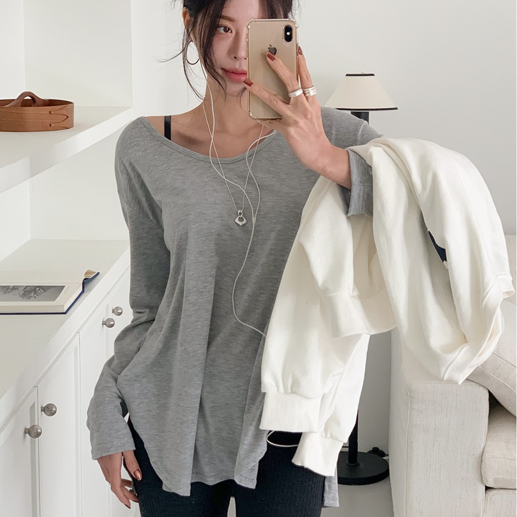 首頁 > 全部商品 > 正韓 純色寬鬆圓領側開岔T 上衣【A73372】