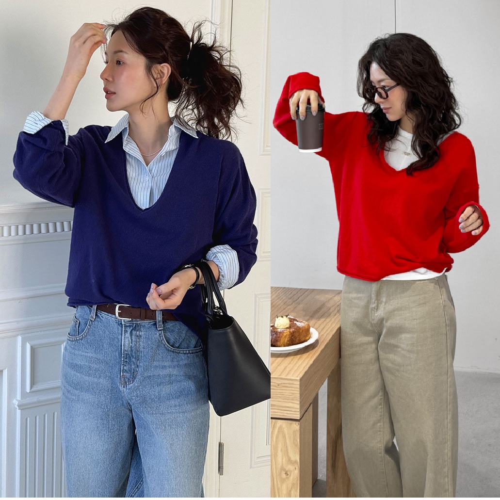 正韓 深V領針織衫素面純色【CE74406】韓國代購 | Foreverkids 韓國時尚精品、韓國代購、正韓空運、洋裝、吊帶褲、外套、針織外套、寬褲