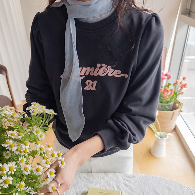 首頁 > 全部商品 > 正韓 字母刺繡小抓褶長袖T【A7455】