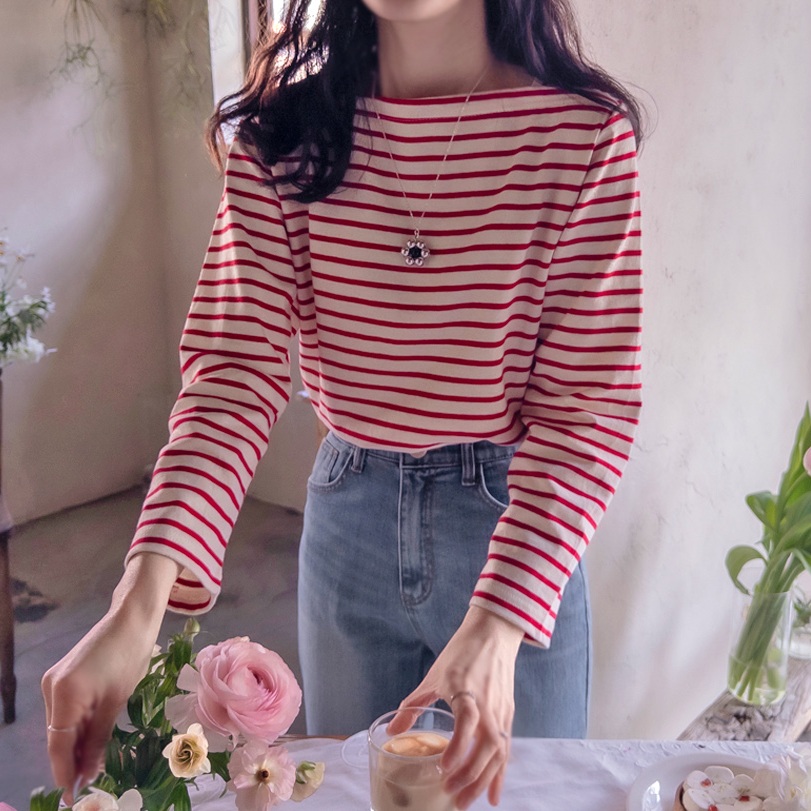 首頁 > 全部商品 > 正韓 方領條紋棉T上衣【YA74506】韓國代購