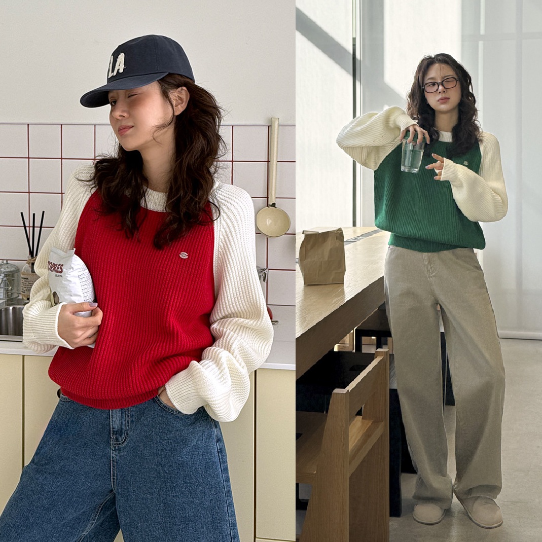 正韓 好看顯瘦版型 插肩撞色配色針織上衣【C74703】韓國代購 | Foreverkids 韓國時尚精品、韓國代購、正韓空運、洋裝、吊帶褲、外套、針織外套、寬褲