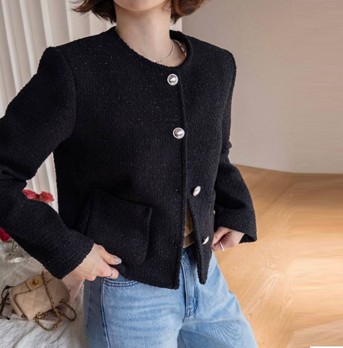正韓 優雅口袋經典小香風花呢 外套 白 黑【A74210】韓國代購