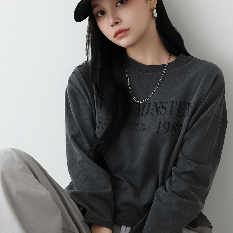 首頁 > 全部商品 > 正韓 剛好的長度 復古印花落肩純棉T 上衣【A74242】