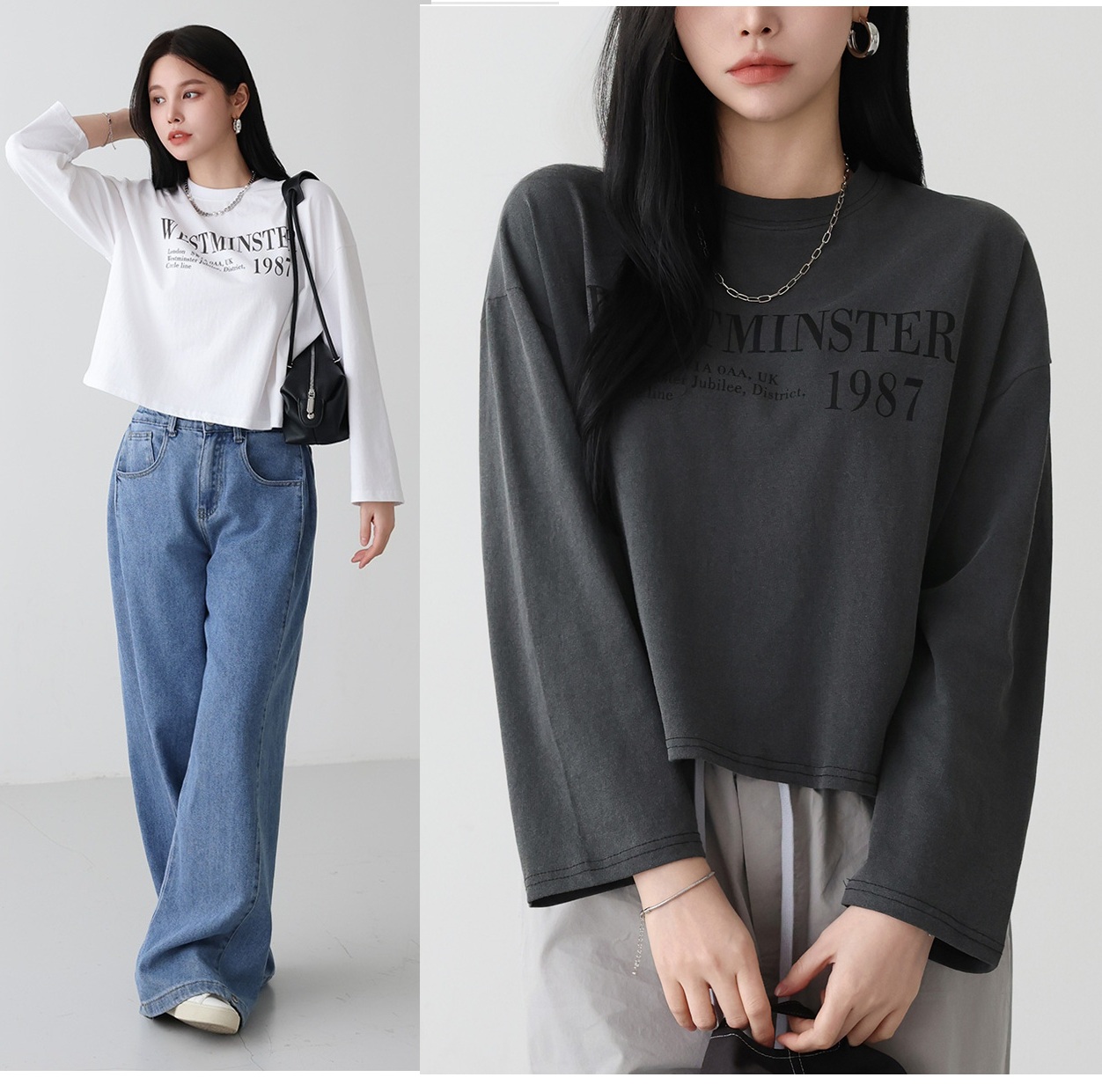 正韓 剛好的長度 復古印花落肩純棉T 上衣【A74242】 | Foreverkids 韓國時尚精品、韓國代購、正韓空運、洋裝、吊帶褲、外套、針織外套、寬褲