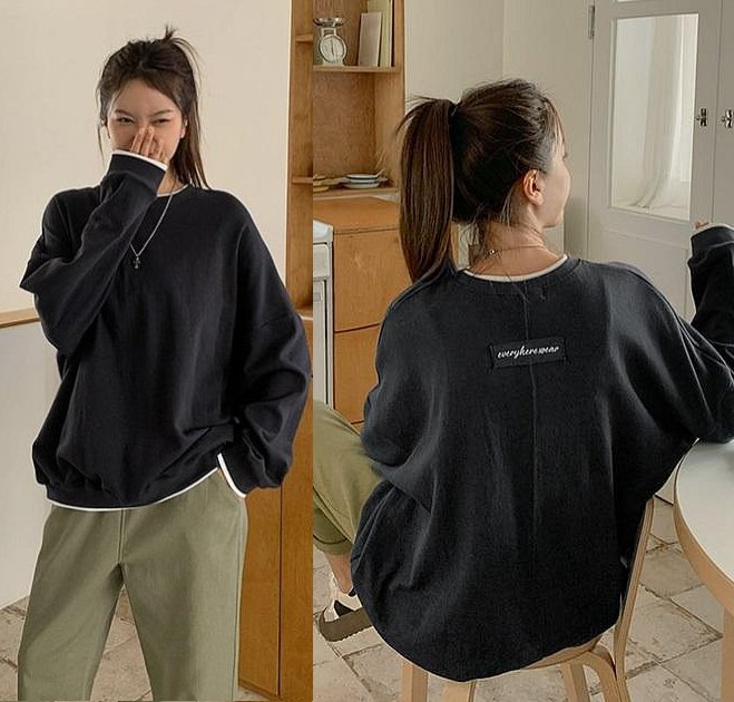 正韓 層次下擺假兩件背補丁標籤T上衣【A74245】 | Foreverkids 韓國時尚精品、韓國代購、正韓空運、洋裝、吊帶褲、外套、針織外套、寬褲