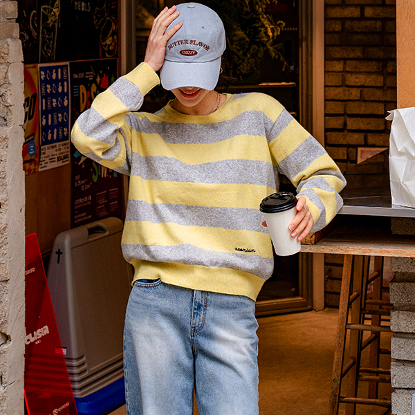 正韓 春天色系條紋字母刺繡針織上衣配色【VS74247】韓國代購 | Foreverkids 韓國時尚精品、韓國代購、正韓空運、洋裝、吊帶褲、外套、針織外套、寬褲