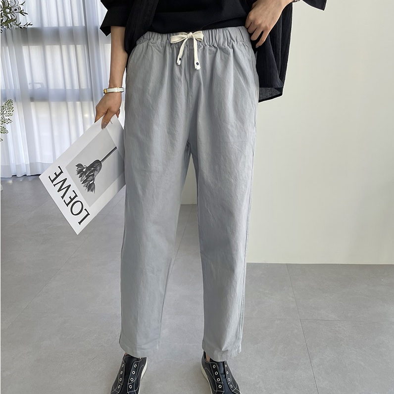正韓 休閒抽繩鬆緊腰 後扣設計錐形褲 老爺褲【A74281】 | Foreverkids 韓國時尚精品、韓國代購、正韓空運、洋裝、吊帶褲、外套、針織外套、寬褲