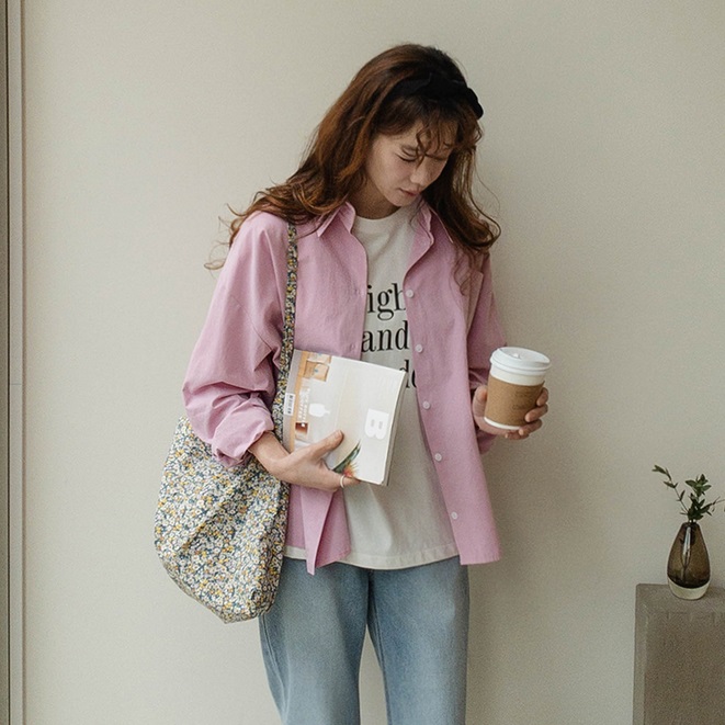 正韓 前後不對稱下擺亮麗色彩 寬鬆襯衫【A74283】韓國代購 | Foreverkids 韓國時尚精品、韓國代購、正韓空運、洋裝、吊帶褲、外套、針織外套、寬褲
