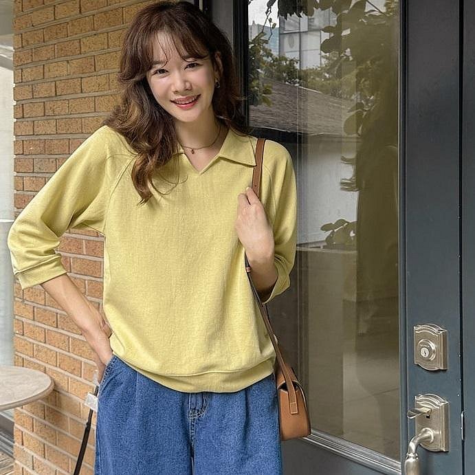 正韓 俐落翻領切線T上衣【B59417】韓國代購 | Foreverkids 韓國時尚精品、韓國代購、正韓空運、洋裝、吊帶褲、外套、針織外套、寬褲