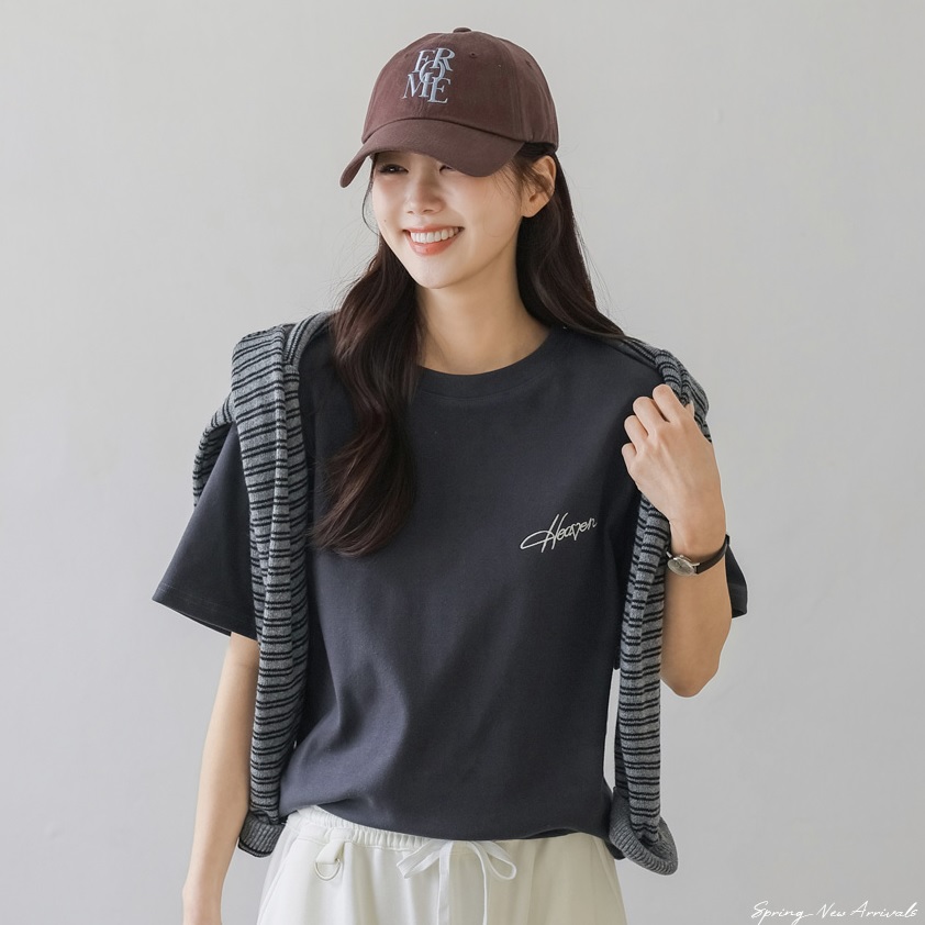 正韓 喜歡~剛好的長度簡單刺繡挺版 短袖t上衣【A74291】 | Foreverkids 韓國時尚精品、韓國代購、正韓空運、洋裝、吊帶褲、外套、針織外套、寬褲