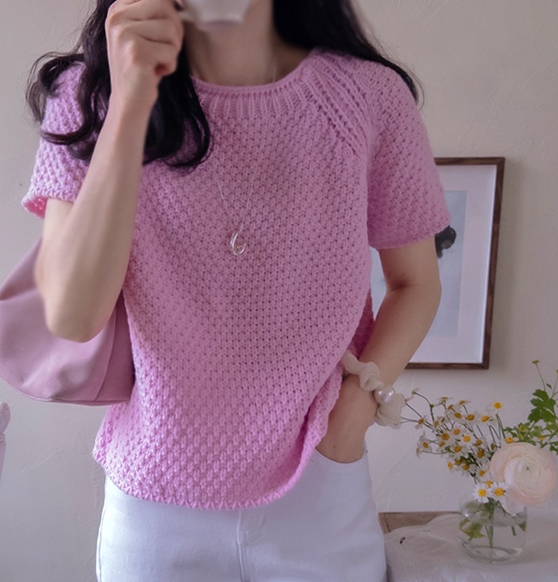 正韓 華夫格質感圓領針織短袖上衣【A74351】韓國代購 | Foreverkids 韓國時尚精品、韓國代購、正韓空運、洋裝、吊帶褲、外套、針織外套、寬褲