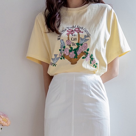 正韓 明亮色彩花朵印花圓領短袖上衣【B74358】