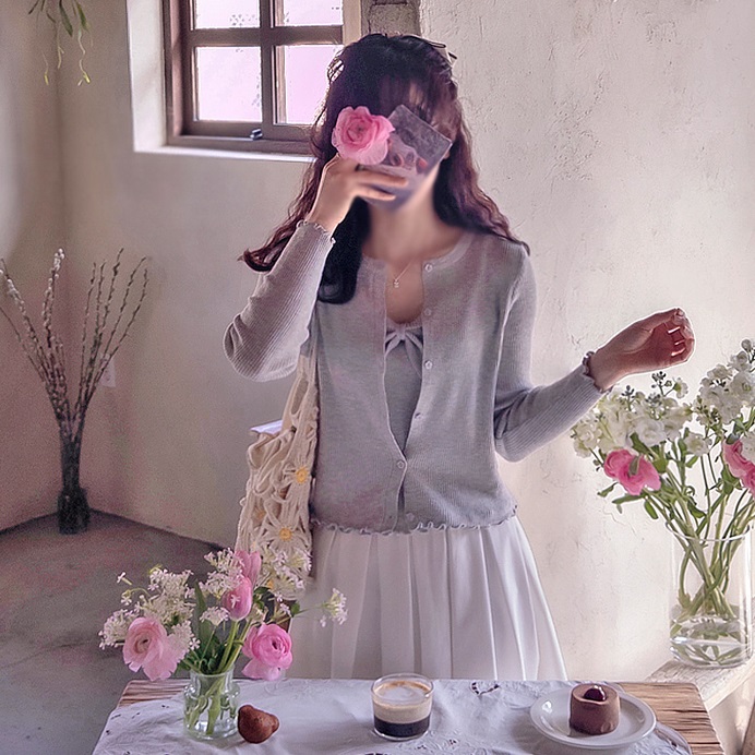 首頁 > 全部商品 > 正韓 柔軟彈性 波浪紋開襟緞帶背心+外套套裝【A74352】