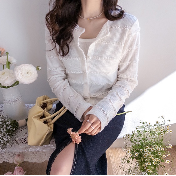 正韓 修身珍珠紐扣 立體紋理編織開襟衫【D74356】韓國代購 | Foreverkids 韓國時尚精品、韓國代購、正韓空運、洋裝、吊帶褲、外套、針織外套、寬褲