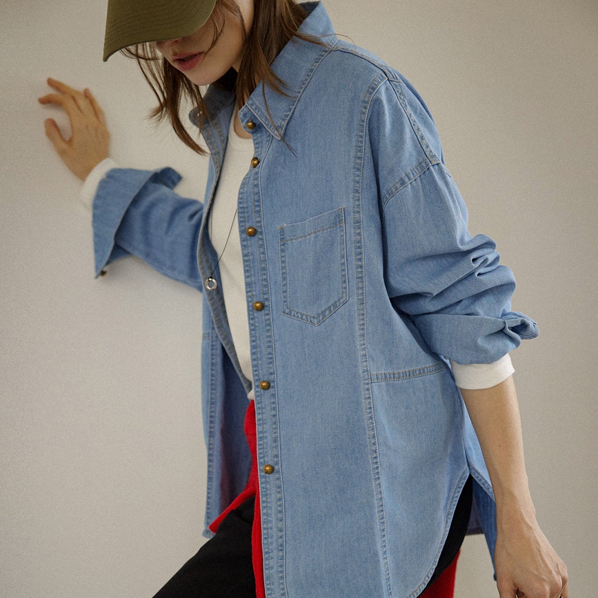 首頁 > 全部商品 > 正韓 柔軟剪裁 圓弧開岔下擺牛仔襯衫【A743635】