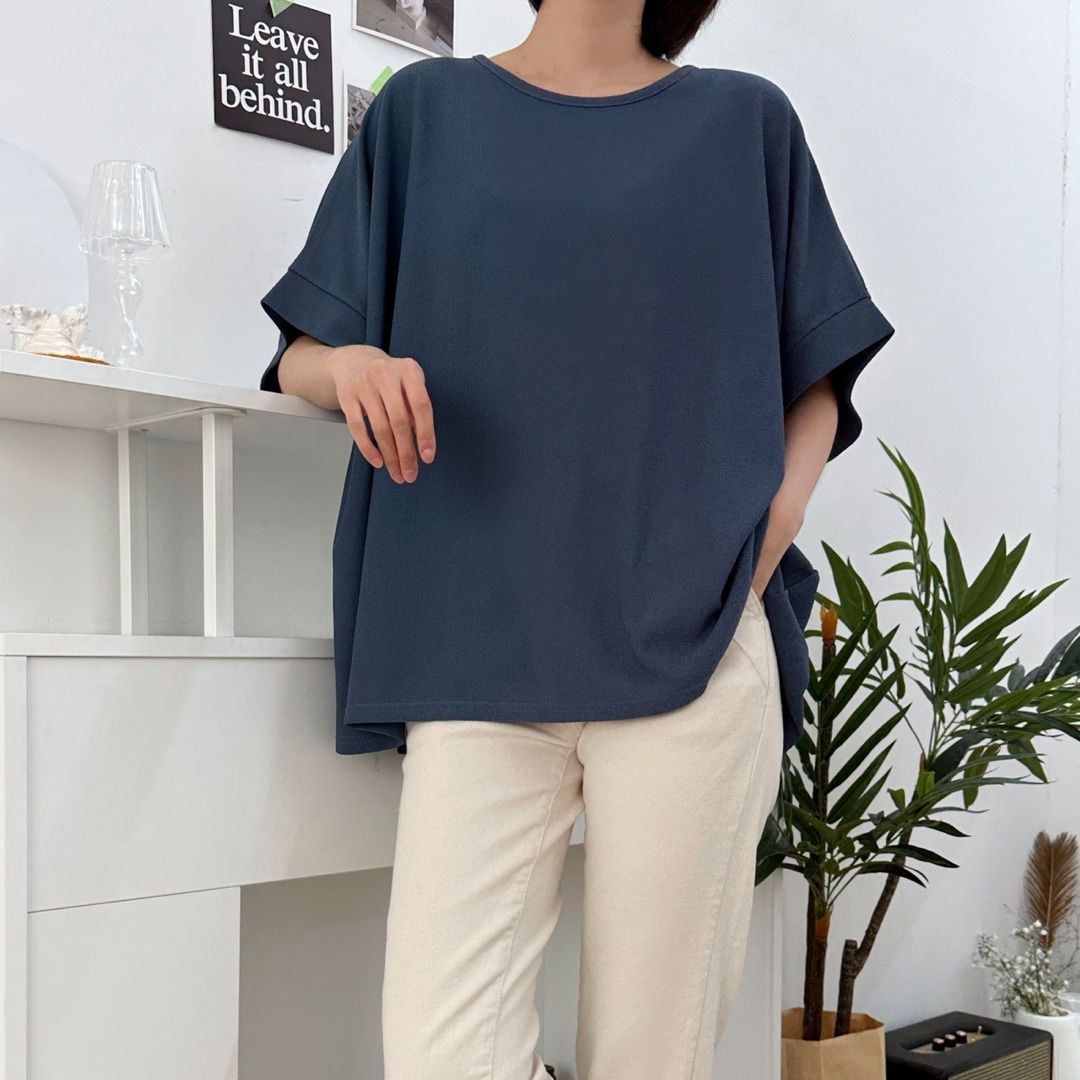 正韓 寬鬆版簡約連袖魟魚袖抗皺彈性T上衣【E74429】韓國代購 | Foreverkids 韓國時尚精品、韓國代購、正韓空運、洋裝、吊帶褲、外套、針織外套、寬褲
