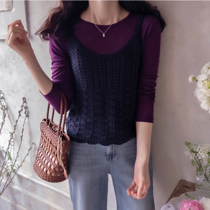 首頁 > 全部商品 > 正韓 鏤空波浪下擺針織背心【B75209】