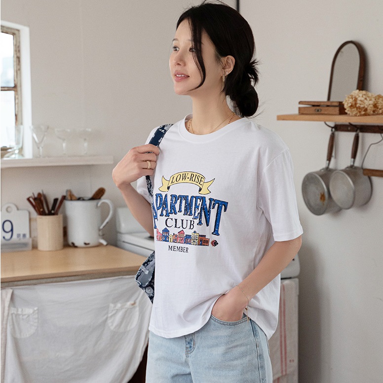 正韓 純棉字母裂纹印花短袖T 上衣【B75309】