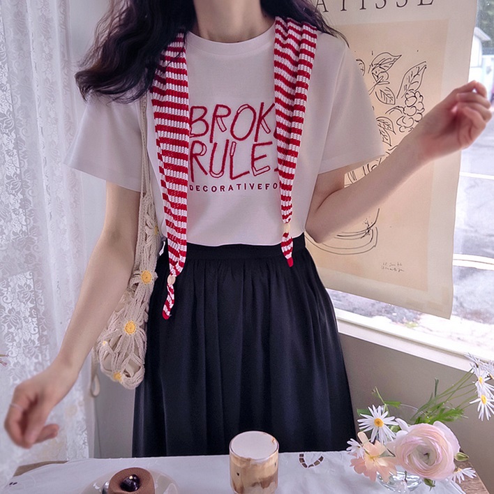 首頁 > 全部商品 > 正韓 一套!配色刺繡字母短T上衣+條紋披肩 套裝【A75908】
