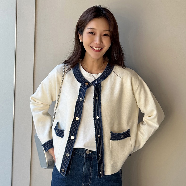 正韓 拼接牛仔設計配色 針織外套【A75902】 | Foreverkids 韓國時尚精品、韓國代購、正韓空運、洋裝、吊帶褲、外套、針織外套、寬褲
