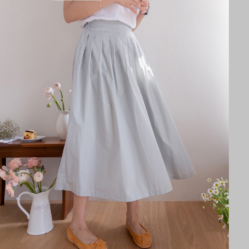 正韓 優雅氣質 褶襉後腰彈性A字版型中長裙【D75907】韓國代購 | Foreverkids 韓國時尚精品、韓國代購、正韓空運、洋裝、吊帶褲、外套、針織外套、寬褲