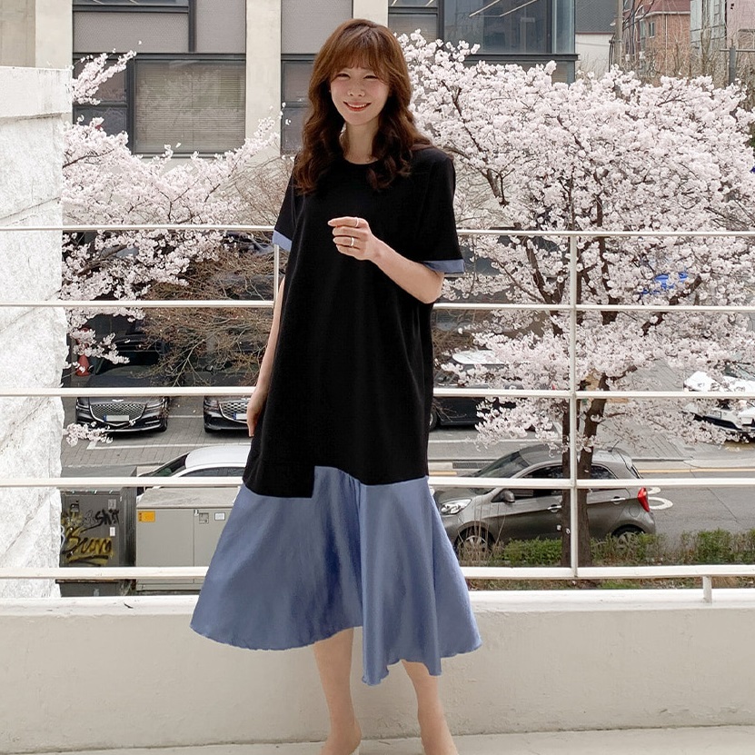 正韓 寬鬆版配色緞面連身裙 長洋裝大尺碼也可【A75263】 | Foreverkids 韓國時尚精品、韓國代購、正韓空運、洋裝、吊帶褲、外套、針織外套、寬褲