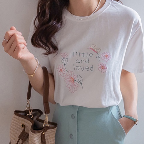 首頁 > 全部商品 > 正韓 愛心花卉刺繡絲質短袖T【B75269】