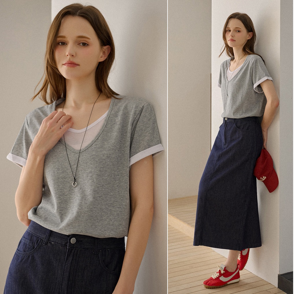 正韓 配色假兩件短袖T上衣【C75262】 | Foreverkids 韓國時尚精品、韓國代購、正韓空運、洋裝、吊帶褲、外套、針織外套、寬褲
