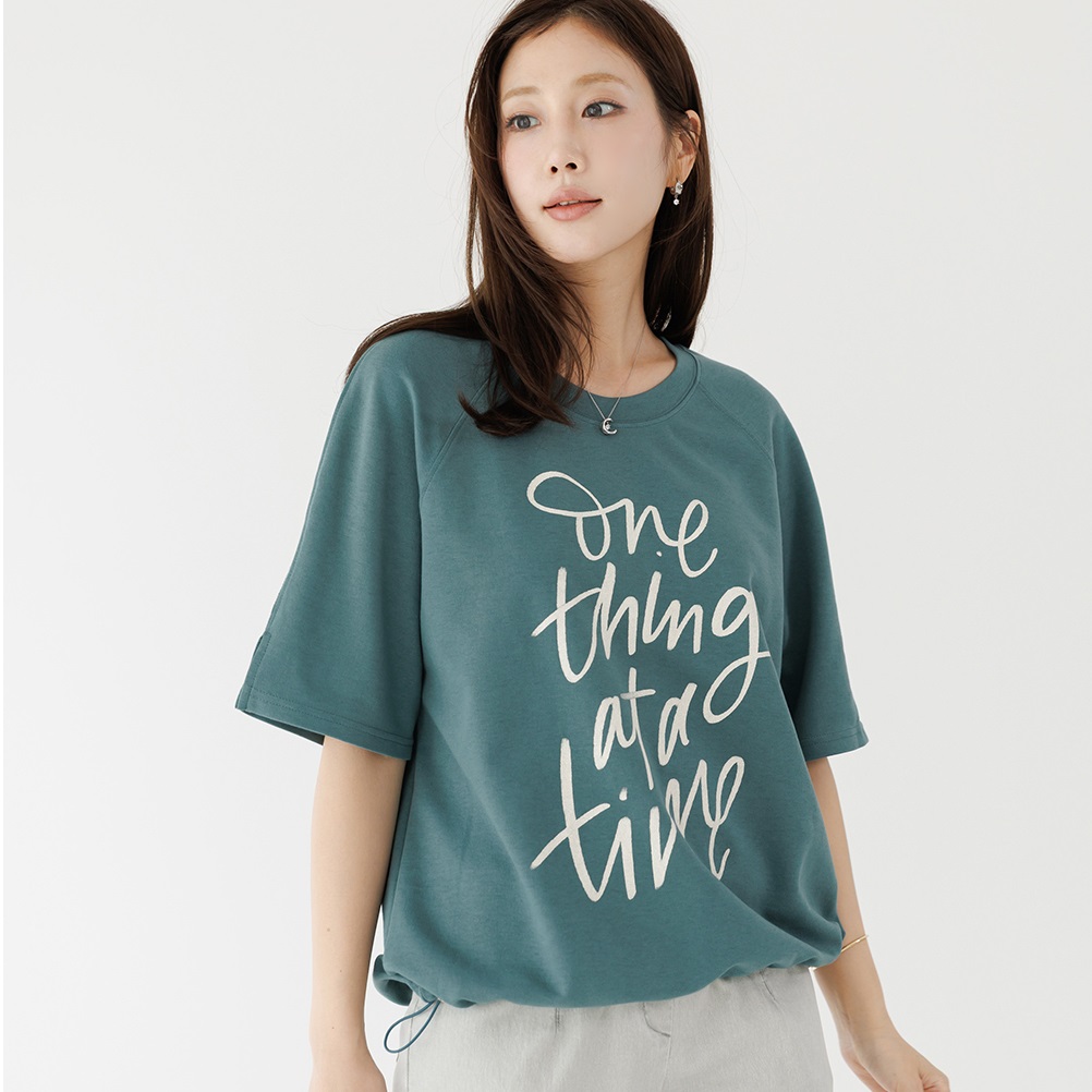 首頁 > 全部商品 > 正韓 彈性字母插肩寬鬆五分袖挺棉T 下抽繩上衣【C75265】