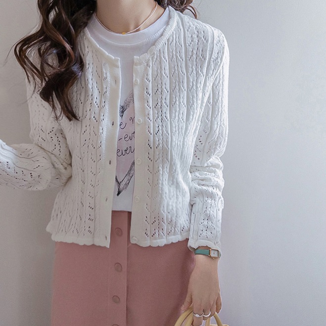 正韓 針織波浪領 鏤空精緻修身開襟衫【B75327】 | Foreverkids 韓國時尚精品、韓國代購、正韓空運、洋裝、吊帶褲、外套、針織外套、寬褲