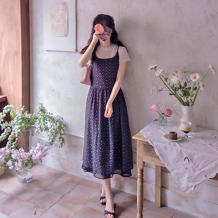 正韓 輕盈氣質花朵背心裙 長洋裝【D75329】 | Foreverkids 韓國時尚精品、韓國代購、正韓空運、洋裝、吊帶褲、外套、針織外套、寬褲