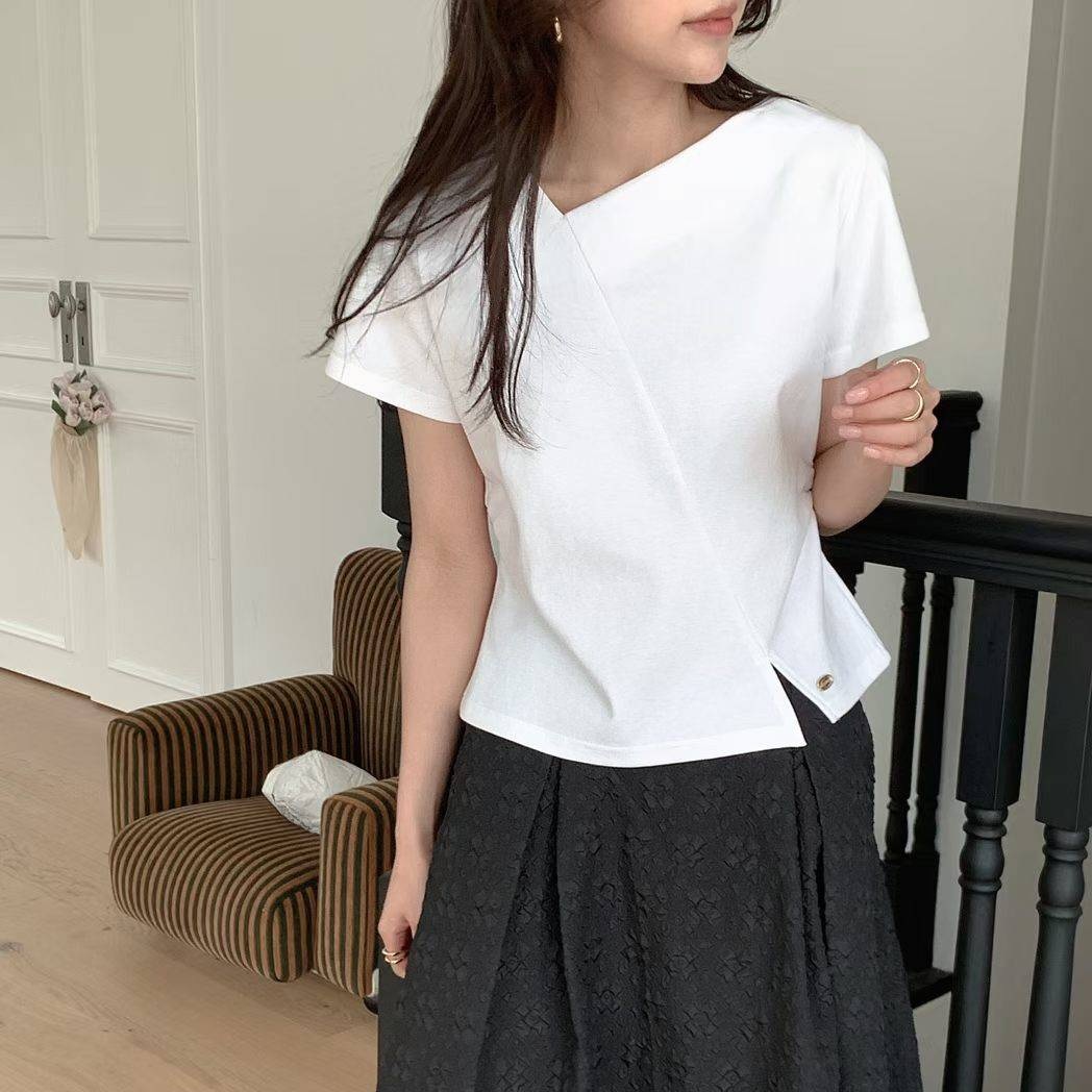 正韓 優雅開岔不規則斜設計小金屬上衣【EF75321】韓國代購 | Foreverkids 韓國時尚精品、韓國代購、正韓空運、洋裝、吊帶褲、外套、針織外套、寬褲