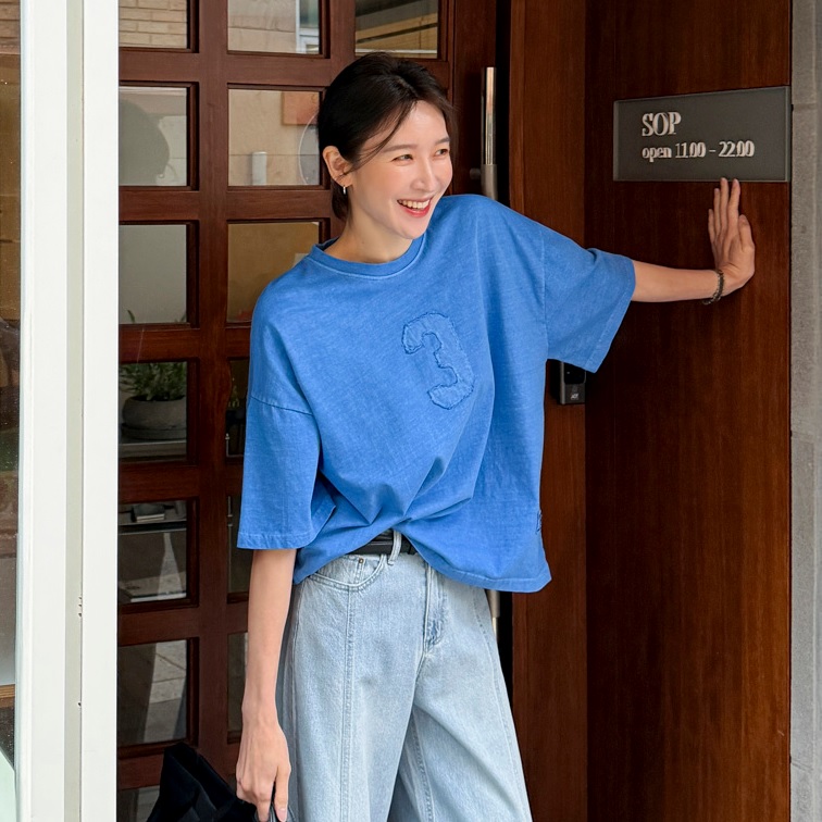 正韓 水洗半短落肩寬T上衣【A75338】 | Foreverkids 韓國時尚精品、韓國代購、正韓空運、洋裝、吊帶褲、外套、針織外套、寬褲
