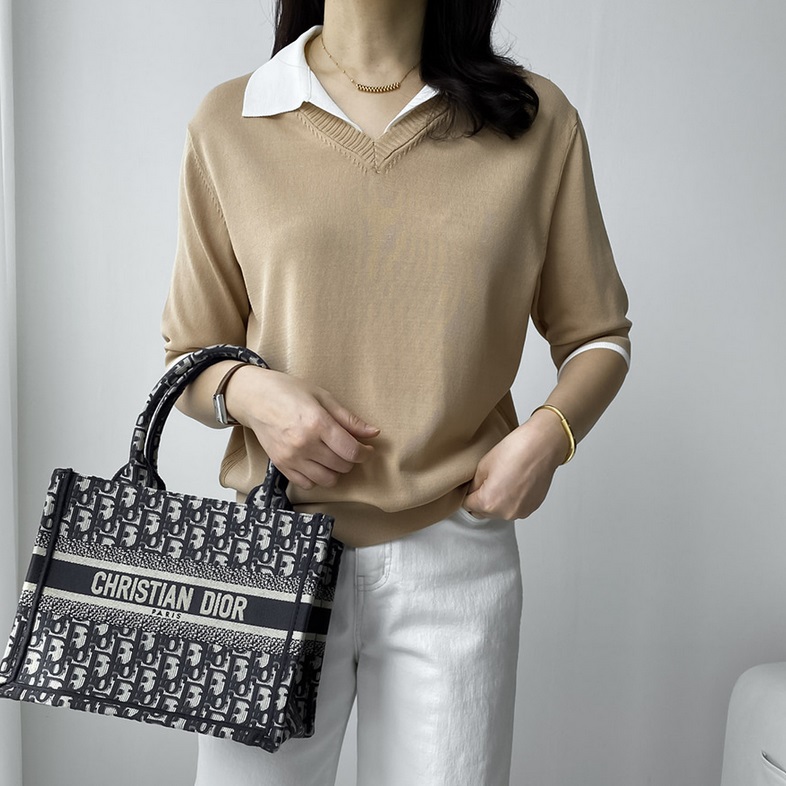 首頁 > 全部商品 > 正韓 氣質配色領彈性親膚針織上衣【A75331】