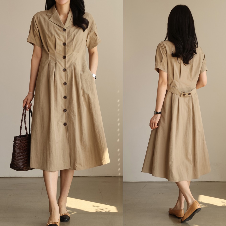 正韓 有口袋襯衫式長洋裝 連身裙【A75342】