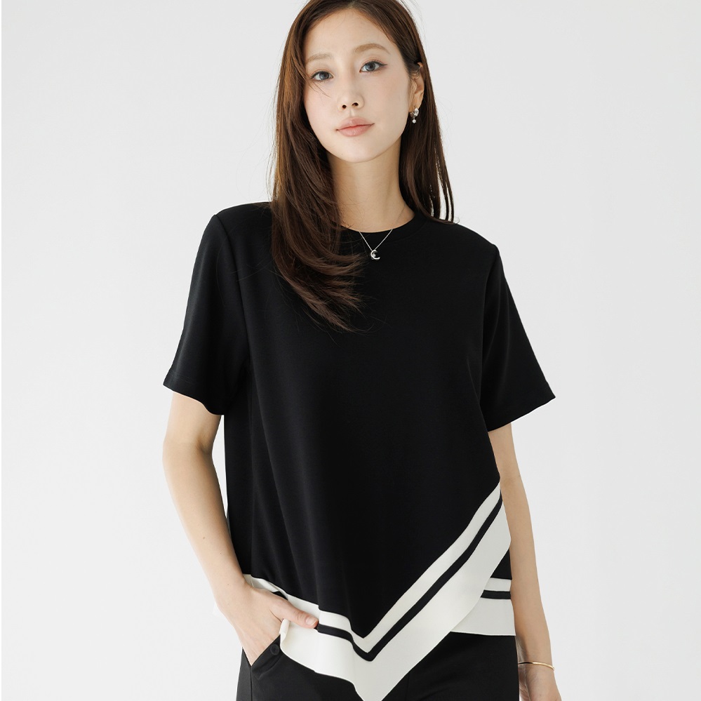 首頁 > 全部商品 > 正韓 自然落肩不對稱配色斜邊T上衣【A75343】